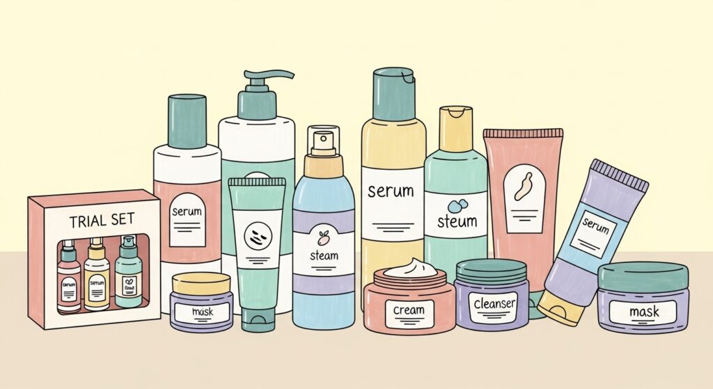 多くの敏感肌用ブランドが、1週間〜10日分ほどのミニサイズセットを販売しています。生理予定日の少し前からこのトライアルセットを使い始めてみて、肌の調子がどう変化するか観察するのがおすすめです。もし肌に合えば、生理前専用の「お守りコスメ」として常備しておくと、毎月の憂鬱がぐっと軽くなりますよ。